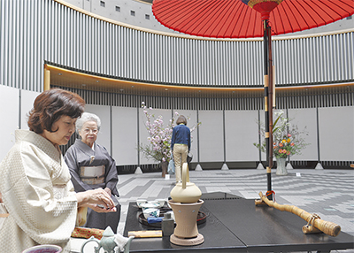茶道からは春の展では初めてとなる煎茶がふるまわれた。来場者は和やかな雰囲気の中、玉露の1杯目のコクのある旨味、2杯目のさわやかな渋味を堪能し、和の心を味わっていた。