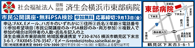 そんな前立腺がんの診断や治療法を知るための無料講座が、9月14日(土)午後2時から3時まで、済生会横浜市東部病院3階多目的ホールで開かれる。定員200人。