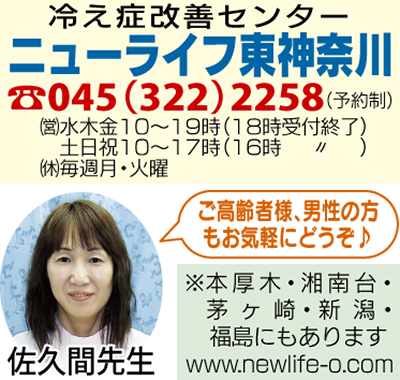 ニューライフ東神奈川は現在、体験フェアを実施中。「代謝排汗装置」は、30分寝ているだけで30Kmのマラソン運動量に匹敵する優れもの。体験者からは「皮脂腺から深い汗を出すので、老廃物や毒出し効果が絶大」と喜びの声が寄せられている。体脂肪は1回で平均1・2kg減の実績を誇る。