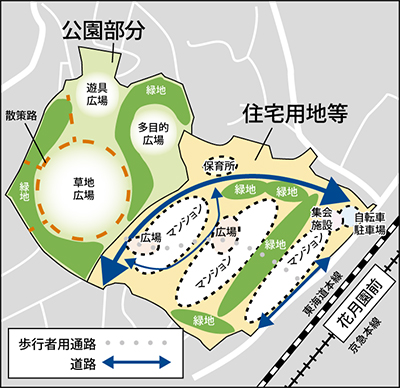 花月園跡地は災害時に避難拠点となる防災公園として、UR都市再生機構によって整備されることが決定している。URは隣接する旧JFE岸谷社宅もまとめて整備する方針。今回の説明会では、防災公園と住宅用地の計画概要が、地域住民らに説明された。