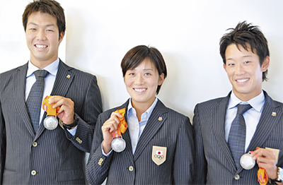 白鵬女子高等学校=北寺尾=の三浦里佳子教諭、柳瀬彰良講師、角野友紀講師が、韓国・仁川で行われたアジア大会に水球日本代表として出場し、銀メダルをつかんだ。同校では10月3日、祝賀セレモニーが開かれ、全校生徒が3人の健闘を祝福した。