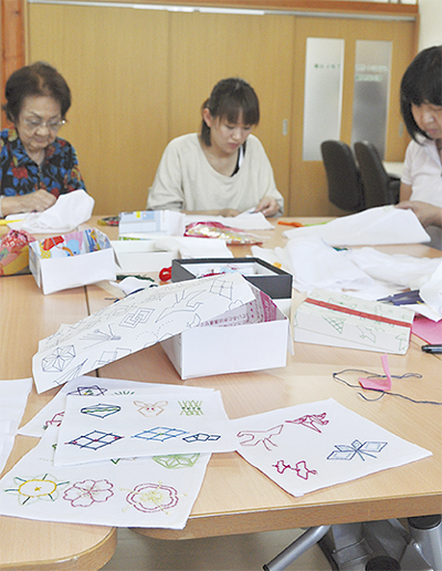 鶴見区地域子育て支援拠点「わっくんひろば」で4月24日、地域で子育てを見守ろうと、高齢者らの参加する孫育て交流会があった。参加者は、昭和初期ごろまであった、赤ちゃんの魂を守るための魔除け「背守り」作りに挑戦。沐浴布やガーゼなどに、鶴や花といった印を手縫いした。