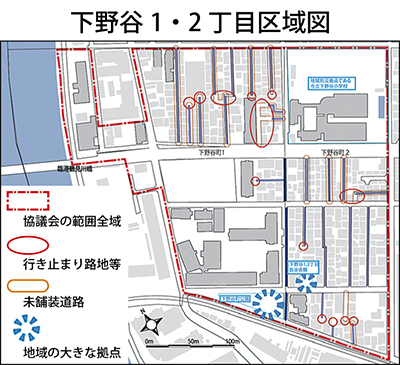 昨年11月、横浜市の地域まちづくり組織として市長認定を受けた「下野谷1・2丁目防災まちづくり協議会」(福田美穂会長=人物風土記で紹介)が防災計画をまとめ、5月15日、地域まちづくりプランとして市から認められた。区内では市場西中町地区に続く2地区目。今後、同団体は、策定した計画を順次進めていく。