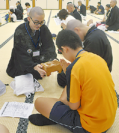 障害児の親の余暇支援を目的に、鶴見区社会福祉協議会が主催となって毎年実施されている企画。障害児は總持寺でのお坊さん体験などを通じてボランティアと交流を深めていた。