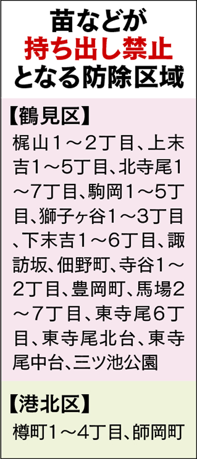 国内での発生確認以降、国からの指示で全国都道府県が毎年調査を実施。今回、昨年6月の調査において、港北区で感染した木1本が見つかっていた。