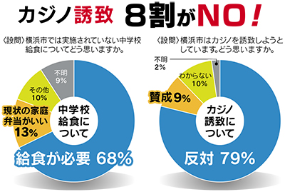 このように、多くの方が、「カジノ誘致」にはNOを、「中学校給食」には実現を望むという結果がわかりました。これが、今、市民の求める現実です。市民の代表として、実現に向け、しっかりと働いてまいります。