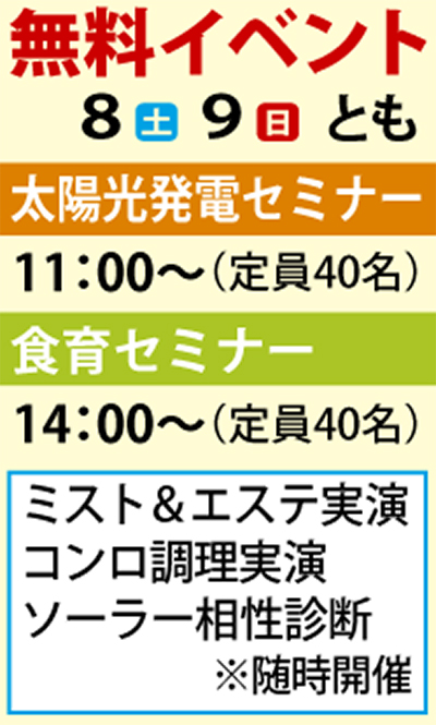 ノーリツ横浜ショールームで開催される「エコ・リラ・キレイフェア」。両日は同社のシステムキッチンやシステムバス、太陽光発電、給湯器・ガスコンロなどを見て触って体験できる。また、水廻りの悩みやリフォーム相談、太陽光発電の疑問などを担当者が直接相談に乗ってくれる。