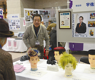 宇佐美さんは高い理容技術で全国的に有名な理容師で、2010年度選定の横浜マイスター。自店で客をカットするだけでなく、全国各地で理容師の指導・育成に携わっている。通りかかった人たちは、会場に展示されたマネキンに興味津々。宇佐美さんは「このようなイベントができて嬉しい」と話していた。