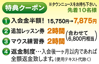 同教室の特徴は、一人ひとりのペースで学べる「個別学習」と「専用教材」。88歳の生徒は「超初心者用テキストと独自の練習問題を反復することで、不思議とパソコンが使えるようになった」と喜ぶ。その他、曜日や時間を選択でき(変更可能)、親睦会や休憩時間の楽しい会話なども、多くのシニアに選ばれる理由となっている。