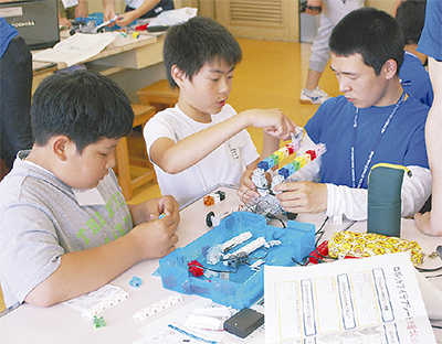児童は日常生活で不便に思う事などをロボットに解決させようと、グループでパソコンを使用して、プログラミングを行った。最終日には、「消しゴムのカスを取るロボット」「野菜を切るロボット」など様々なロボットを発表。指示通りに動くと会場から歓声が上がった。発表後の質問で更なる課題が提示されると、発表グループは機材を用いながら解決する手立てを発表し、課題解決に結びつけるやりとりもみられた。9月には、5年生が挑戦する。