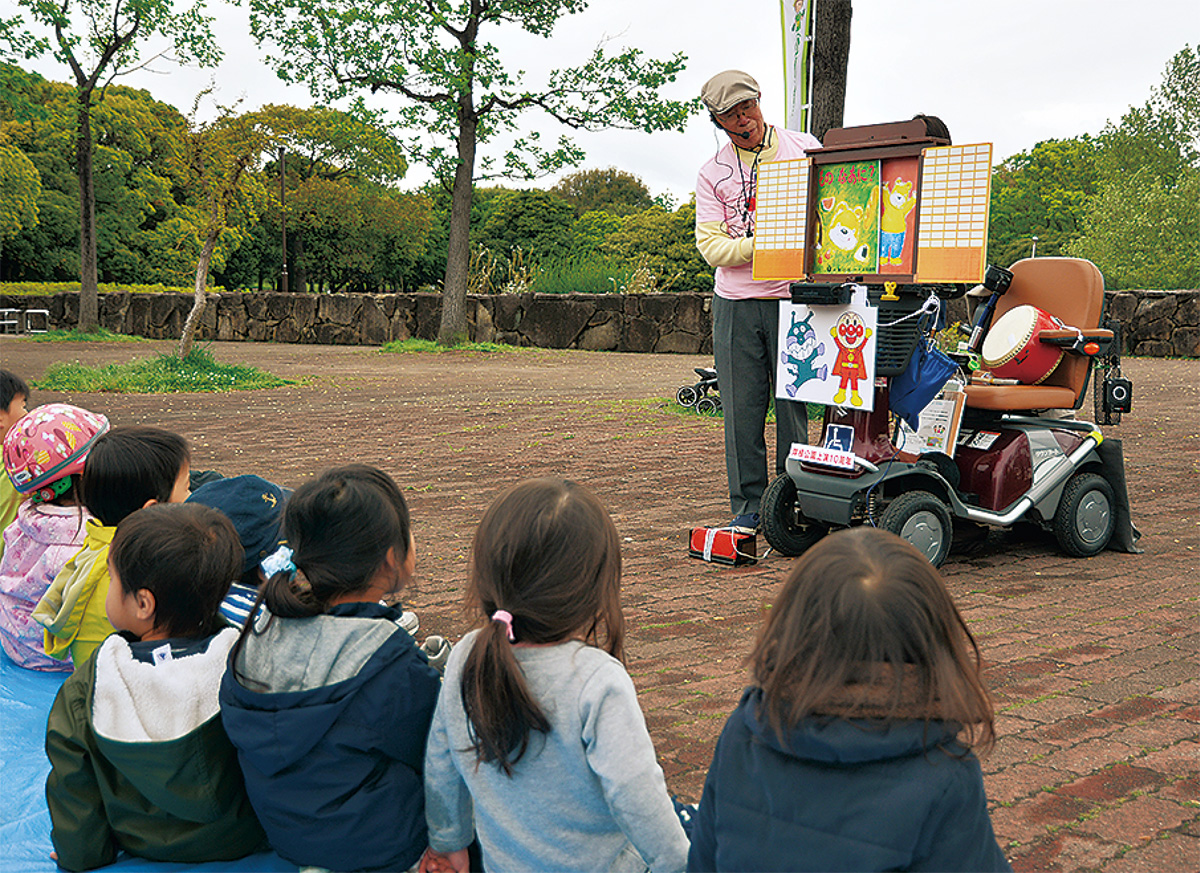 杉田さんは横浜開港150周年の09年に、山下公園で紙芝居を始めた。電動車いすに乗った「紙芝居おじさん」は瞬く間に話題となり、公園や幼稚園、施設などで上演を続けてきた。その数456回。こうした活動が評価され、14年には県からボランタリー活動奨励賞を受賞している。