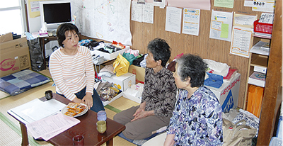 呼びかけの1人で、子育てサポートほっぷ代表の福岡好恵さんは「物品は一段落し、今は情報提供が中心」と話す。多くが高齢者や子育て世帯で、自治体など公的な支援情報を探すのも困難な状況。市内で暮らす息子夫婦の勧めで福島県楢葉町から夫婦で避難してきた新妻司子さん(78歳)も、感謝の言葉を口にする。「サロンのおかげで本当に癒されます」。原発の危険区域にあり、震災で屋根瓦が落ちたままの家を残して避難生活を続ける。1カ月で避難所や親類宅など6カ所を転々として、ようやくここにたどり着いた。「自分たちにはあまり見せないが、ほとんどの人が複数回の移転を強いられ、精神的にも大きなストレスを抱えているはず」と福岡さん。