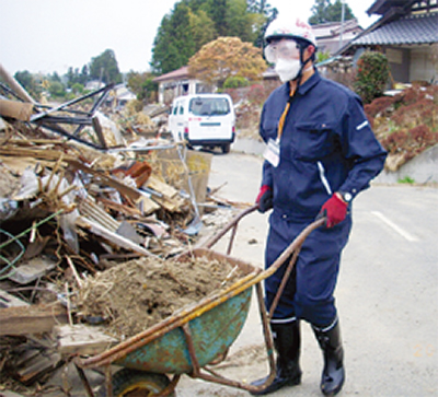 南相馬では瓦礫撤去作業をしながら行動しました。重機が入れない場所は人力で取り除くしかなく、現地の方々の苦労はいかばかりかと思いました。同市の半径20Km地点から先はバリケードが敷かれ、入ることは許されず、そこから先の瓦礫撤去は全く手つかずの状態です。ただ現在は、南相馬市の放射性物質の量は風の影響で比較的低い数値を示しています。