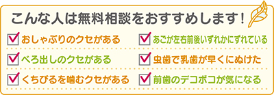 個人差はありますが、歯が生え変わる12歳までの時期はあごも成長する時期。この時期、歯並びの悪さや、おしゃぶり、唇を噛むといったクセを放置しておくと、下のあごがずれていきます。あごが小さいまま放っておくと歯がおさまりきらずデコボコした歯並びになっていってしまいます。