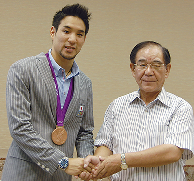 8月に行われたロンドン五輪に出場し、競泳男子200m平泳ぎで銅メダルを獲得した立石諒選手(慶應義塾大学)の栄誉を称え、川崎市は9月5日、スポーツ特別賞を贈った。