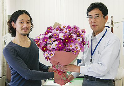 区内宮前平で生花店を営む加藤智之さんは「宮前区を花で飾ろうプロジェクト」として21日の区民祭を花で彩る。10日には石澤桂司区長を表敬訪問した。席上、加藤さんは「宮前は花が多い街。その良さを伝え、地域活性をしたい」と挨拶。石澤区長は「花は人々を元気にする。ぜひ宮前にパワーを」と話した。