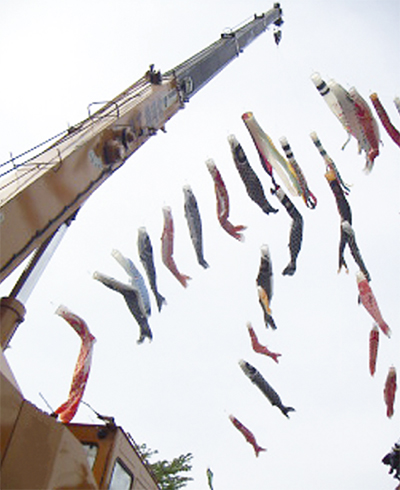これは稗原小学校おやじの会「パワーズ」が2009年から行っているもので今回で4回目。地元クレーン作業会社の協力で、25トンクレーン車に4本のロープを吊るし、約30メートルの高さにおよそ40匹の鯉のぼりが上がる。同会では「最近はマンションが増えて鯉のぼりを上げる家が減った。地域の子どもたちに、歌にあるような”屋根より高い”鯉のぼりを見せてあげたい」としている。住所は潮見台21。尻手黒川線「潮見台」交差点近くの常陸機工(株)車庫内。3日が雨天の場合は中止となる。