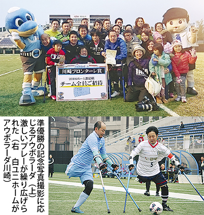 病気や事故で手足を切断した人が松葉杖をついてプレーするアンプティサッカーの第5回日本選手権大会が今月22日と23日、富士通スタジアム川崎で開かれた。大会に出場した地元川崎市に拠点を置くFCアウボラーダ川崎は準優勝となった。