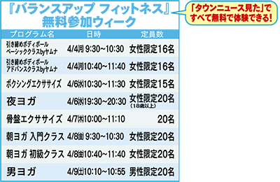 今回開設10年を記念して、「タウンニュースを見た」と言って申し込むと、無料で参加できる(内容・日時は表参照)。
