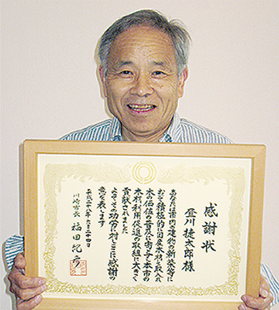 個人で表彰を受けた晝川氏は「市の依頼を受け昨年末に納品しました。特にイスについては通常堅い材料を使うのですが、やわらかく優しい色を醸し出す宮崎県産の珍しい材料を使っています。感謝状をいただき大変うれしく思います」と話している。