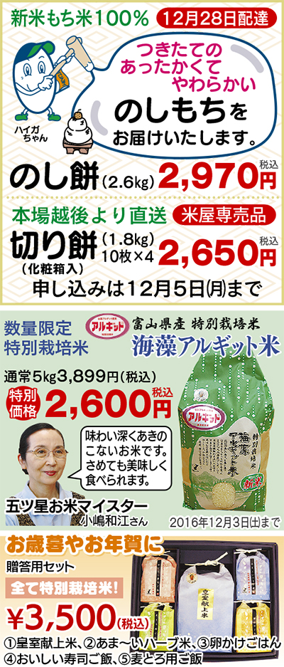 区内犬蔵のお米専門店『ヤマイチ』があったかくて柔らかなつきたて「のし餅」の予約を開始した。
