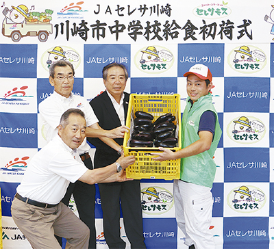 セレサ川崎農業協同組合(JAセレサ川崎・原修一代表理事組合長)は9月3日、農産物大型直売所のセレサモス宮前店で川崎市中学校給食初荷式を開いた。