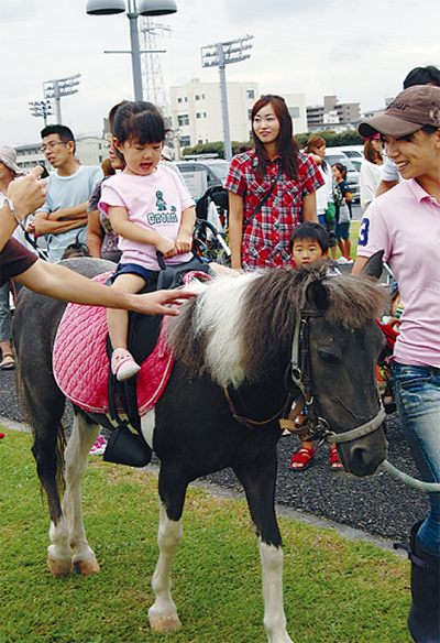 ヒーローショーやふれあい動物コーナーなどの各ブースにはたくさんの親子が集まり笑顔が溢れた。広々とした芝生に敷物を敷いてピクニックを楽しむ家族の姿も見られた。ポニーの乗馬体験には順番を待つ長い行列ができていた。