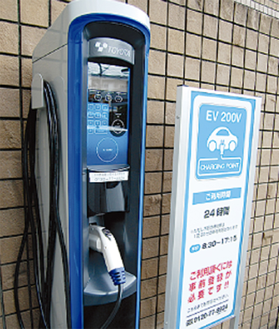 駐車場を運営するタイムズ24(株)の提案で「EV普及、温暖化対策につながれば」(市財政局)と設置された充電器は国内主要の電気自動車・プラグインハイブリット車に対応。登録すれば平日午前8時半から午後5時15分の間、1回60分まで使用できる。休日は同時間内、制限なし。費用負担はないが別途駐車料金が必要。