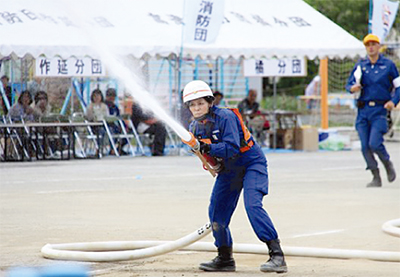高津消防団は19日、久本小学校校庭で消防大会を開催した。「自分たちの郷土は、自分たちで守る」との思いで、日ごろの訓練を続ける同消防団。多くの市民に消防活動への理解を深めてもらおうと、毎年この大会を開いている。