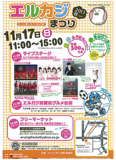 商店会と地域との絆を深めようと、梶が谷駅前通り振興会の共催などで実施されているエルカジまつり。同実行委員会(澁谷隆弘実行委員長)によると、今回はファミリー層が参加しやすいよう昼の部のみ開催する。