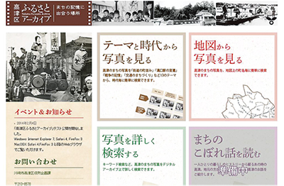 高津区役所は、ホームページ上で高津区の古い写真などを閲覧できるデジタルアーカイブ「高津区ふるさとアーカイブ」事業に取り組んでいる。本格稼動は4月1日から。現在、試験的にホームページを公開している。