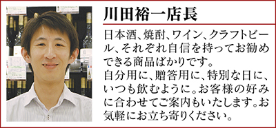 店内にずらりと並ぶ日本酒、焼酎、ワイン、クラフトビールは、同社の坂田真一社長はじめ、スタッフが蔵元へ直接足を運び、厳選したもの。蔵元から将来の展望や人材育成まで様々な話を聞き、関係を築く。