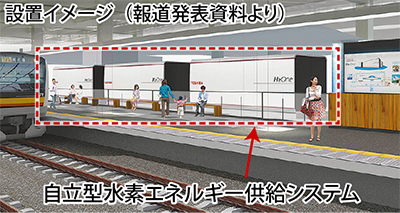 南武線・武蔵溝ノ口駅に水素エネルギーを活用した自立型水素エネルギー供給システム「H2One」が導入されます。これは、世界初、川崎生まれの太陽光発電と水素を活用して、発電するシステム。「電気エネルギーの長期保存」「自立して電気と温水を供給」「簡単に素早く設置可能」という特徴が評価されていて、鉄道会社としては全国で初めて溝ノ口駅に導入が決定しました。設置時期は2016年度中です。