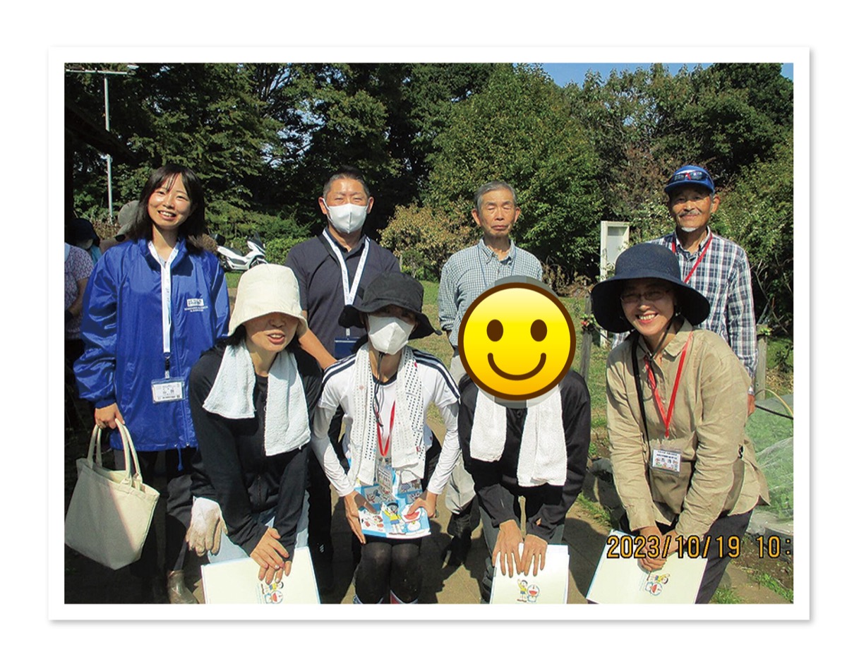 11時になると区役所地域振興課から修了証を持って担当者が来てくれて「修了式」を行いました。地域振興課の橋本係長からご挨拶頂いた後、私たちの会長から受講生一人ひとりへ修了証を手渡しました。受講生の皆さんには会への入会もお勧めさせて頂きました。現在、活動日出席率の高い会員の半数ほどは菜園体験教室参加を切っ掛けに入会してくれた仲間です。菜園体験教室は区役所との協働イベントとして8年前から毎年実施しており、春日台公園を私たちボランティア団体と区民の両者が有効活用できる場として定着したと言えるでしょう。