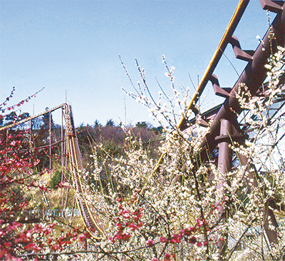 園内には梅の名所として知られる聖地公園があり、寒紅梅や白加賀、紅千鳥など約200本の梅がある。