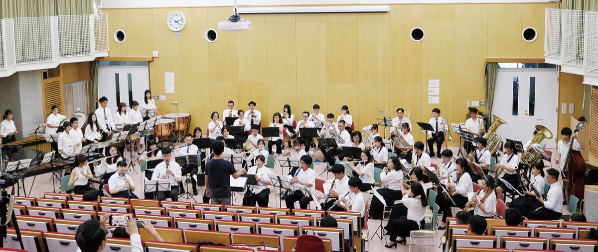 今回は、台湾側から受け入れの依頼があり、台中市民吹奏楽団のメンバー37人とその家族5人が同校を初めて訪問した。同校吹奏楽部顧問の角野文彦教諭らは、「台湾の方々と演奏できる貴重な体験」と受け入れを決めた。