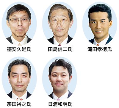 名乗りを挙げているのは現職3人と新人2人の5人で混戦の様相を呈している。