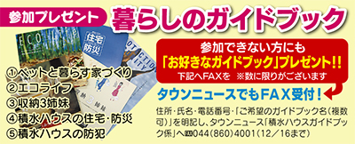 積水ハウス(株)川崎支店は12月17日(土)、今の暮らしや将来の新築、建替え計画にぜひ活かしたい『開運・家相・風水』『エコ住宅』セミナーを開催する。会場はカメリアホール(JR川崎駅ビルBE・8階)。