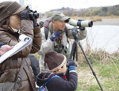 同企画は10年以上行われており、今回は大人から子どもまで約40人が参加。特別講師として迎えた府中水辺の楽校の大沢邦夫さんが鳥の種類を紹介するクイズを行うなど盛り上がった。
