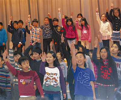 「十年間の成長と感謝の気持ちを伝え夢と希望をもって未来へすすもう」をスローガンに、児童らが過去のエピソードを語りながら家族や兄弟、先生らに「ありがとう」と伝え、オリジナルの歌詞を交えた「U&I」の合唱や息の合ったダンス、ピアニカの演奏と合唱を交えた「カントリーロード」の合唱奏などこの日のために練習してきた演芸を披露した。