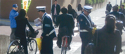 11日朝の通勤・通学の時間には小杉町交差点や、小杉町3丁目などで自転車マナーの周知活動を行った。左側通行の徹底や、神奈川県の条例で禁止されているイヤホンをつけたままの運転が違反であることなどの呼びかけを行った。