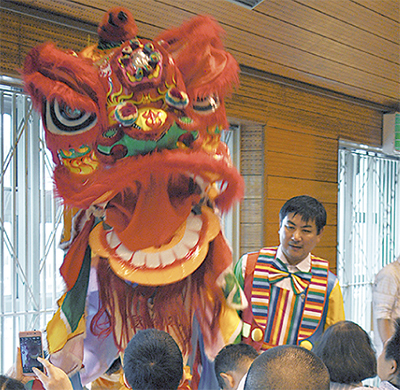 当日は中国民族芸術団が、高さ2mの一輪車での演技や京劇などを披露。中国の伝統芸能である「獅子舞」が場内を練り歩くパフォーマンスでは、児童らから歓声があがった。