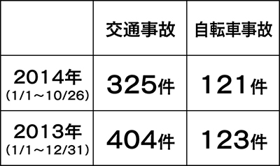 今年中原区内で発生した交通事故件数は325件(10月26日現在)で、そのうち3分の1以上の121件が自転車による事故だ。昨年一年間で発生した123件を、すでに上回るペースで増加しており、中原署では注意を呼びかけている。