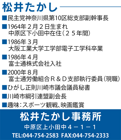 民主党神奈川県第10区総支部副幹事長中原区市政担当松井たかし