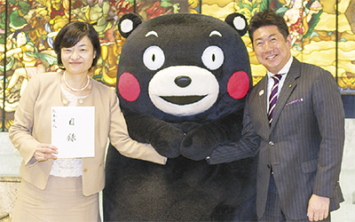 この日は熊本県の人気キャラクター「くまモン」も登場し、チャリティーイベントで熊本名産品の詰め合わせ300セットを訪れた人に販売。関係者によると、名産品売上全額と募金は36万6850円に達し、熊本市に寄付金として贈った。