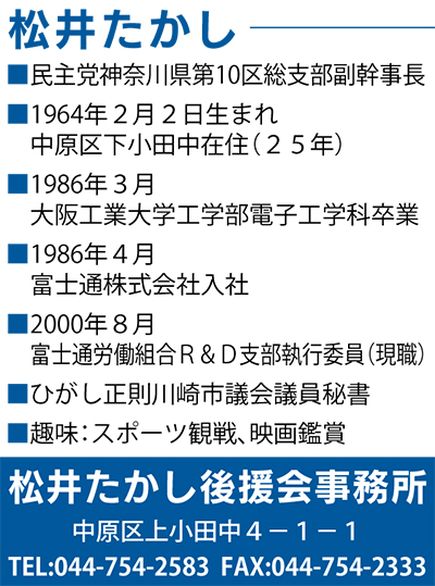 民主党神奈川県第10区総支部副幹事長・中原区市政担当 松井たかし