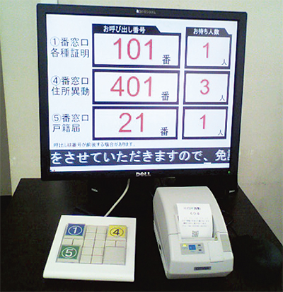 同課は住民票や戸籍証明の申請などを行う窓口。これまでは番号札を渡し、口頭で番号を呼び出すなどして受付を管理していた。