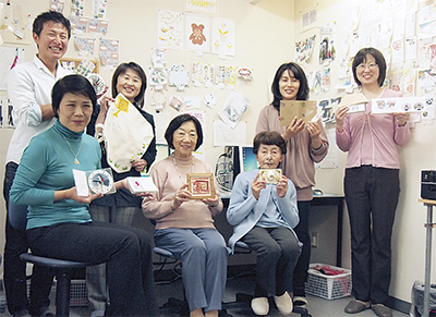 パソコン教室「パソコンどーじょー」は同名NPO法人が運営するパソコン教室。地域で日ごろの成果を発表できる場を探していたところ、教室に通う生徒の声掛けで同信金での展示が実現したという。展示はロビーで開催され、カレンダーやうちわなどの実用品に加え、タイルや卵の殻など、身近にある材料を利用した、遊び心とアイディアが光る作品も多く展示される。開催時間は開店から午後3時まで。