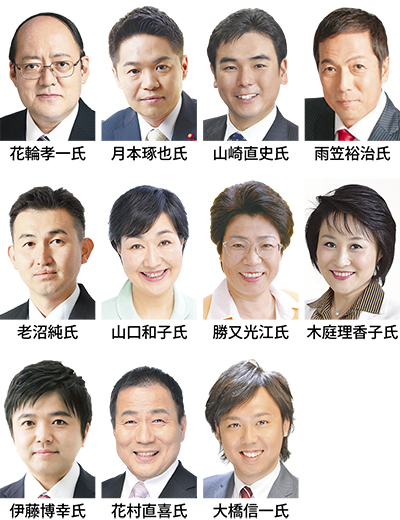 現職では雨笠裕治氏(民主党/7期・56歳)、山崎直史氏(自民党/3期・41歳)、月本琢也(無所属/1期・36歳)、花輪孝一氏(公明党/4期・61歳)、木庭理香子氏(民主党/1期・47歳)、勝又光江氏(共産党/2期・61歳)の6氏が立候補の意思を固めている。