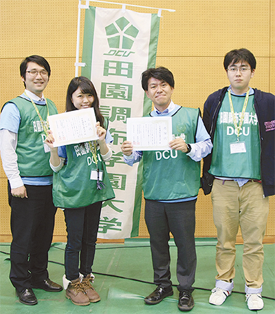 田園調布学園大学(麻生区東百合丘)はこのほど、全国から9大学が集い地域活動をテーマに発表し合う「第9回大学人サミット信州・まつもとカレッジ2015」の「大学自慢コンテスト」で初優勝を果たした。同大学が行ってきた麻生区と連携しての地域活動や、被災地への復興支援活動などが評価された。